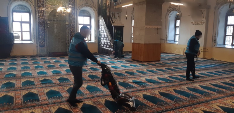 Tavşanlı tarihi camisi Ulu Cami'de temizlik çalışması